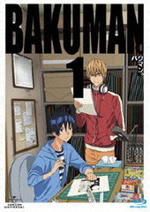 超人気ジャンプコミック「バクマン。」がNHK教育テレビでアニメ化! Blu-ray第1巻リリース!! ――何となく毎日を過ごしていた中学生・真城最高は、ある日、同じクラスで学年トップの秀才・高木秋人から声をかけられる。ずっとマンガ家になるのが夢だった、文才がある自分と高い画力を持つ最高が組めば、と熱く語る秋人。秋人とともにプロのマンガ家への険しい道を歩む決意をした最高。まったくの素人だった二人が、マンガの創作から編集部への持ち込み、そして連載をめざし、熱い情熱だけを糧に青春のすべてをマンガに賭ける! 第1話を収録。初回限定版は、ブックレット(12P予定)、『超ヒーロー伝説』コミックスカバー(1〜3巻分)、マンガ原稿の複製原画状カード(2枚)、特典CD付き。CDには、 「ミニドラマ」と、各キャラクターが歌う、過去の名作『ジャンプ』アニメのカバー曲を2曲収録 (※第1巻は、歌: 真城最高(阿部敦) 『CHA-LA HEAD CHA-LA』(『ドラゴンボールZ』)、『微笑みの爆弾』(『幽遊白書』)。